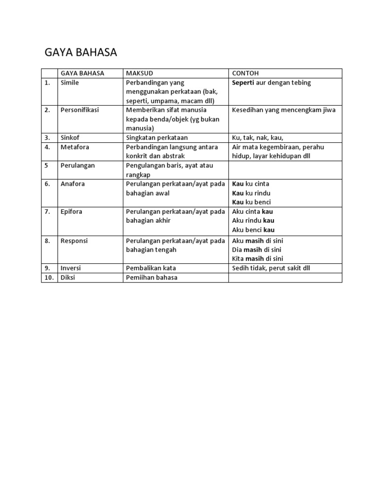 Gaya Bahasa Komsas Tingkatan 2 Otosection