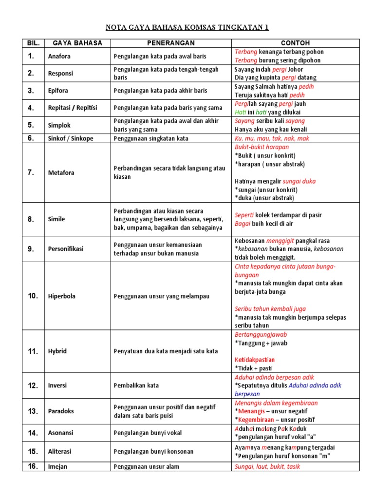 Nota Gaya Bahasa Komsas Tingkatan 1 Pdf