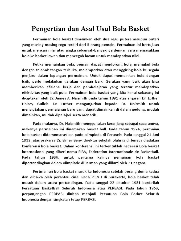 Pengertian Dan Asal Usul Bola Basket Pdf